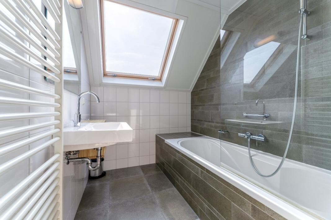 Das zweite Badezimmer ist mit einer Badewanne, Waschbecken und Designheizkörper ausgestattet, das dritte Badezimmer verfügt über eine stilvolle begehbare Dusche, Waschbecken und Designheizkörper. Mit insgesamt drei Badezimmern ist dieses Haus ideal für große Familien oder stilvolles Gästeempfang.