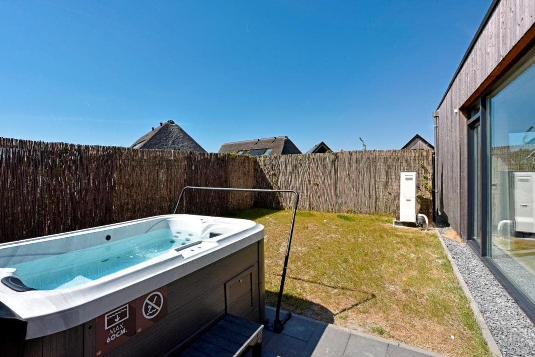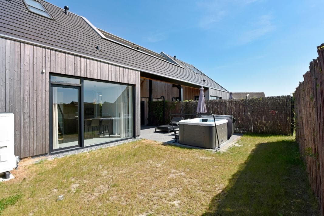 Vom Wohnzimmer aus haben Sie direkten Zugang zu einem abgeschlossenen, sonnigen Garten, der maximale Privatsphäre bietet. Hier finden Sie eine großzügige Terrasse mit Grill, ideal für lange Sommerabende mit Familie oder Freunden. Einzigartig an diesem Haus ist der Outdoor-Wellnessbereich: Lassen Sie alle Sorgen in Ihrem eigenen Whirlpool abgleiten, genießen Sie die Wärme Ihrer eigenen Sauna oder nehmen Sie eine erfrischende Dusche im Freien unter der Außendusche. Alles ist vorhanden, um vollständig zu entspannen und Luxus zu genießen.